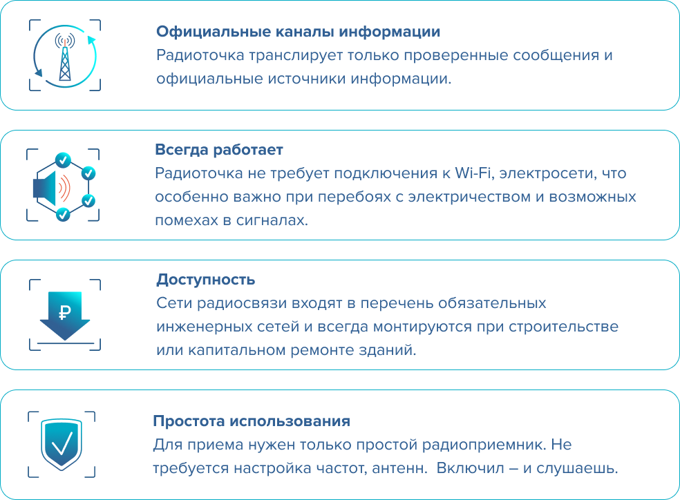 Очевидными преимуществами использования радиоточки являются: