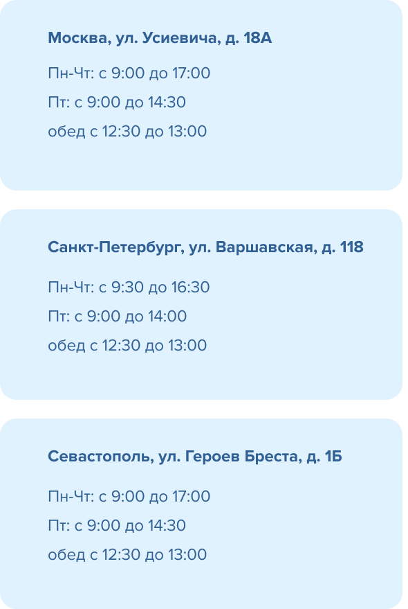 Время работы офиса: с 9:30 до 16:30 с понедельника по четверг, в пятницу с 9:30 до 14:00.